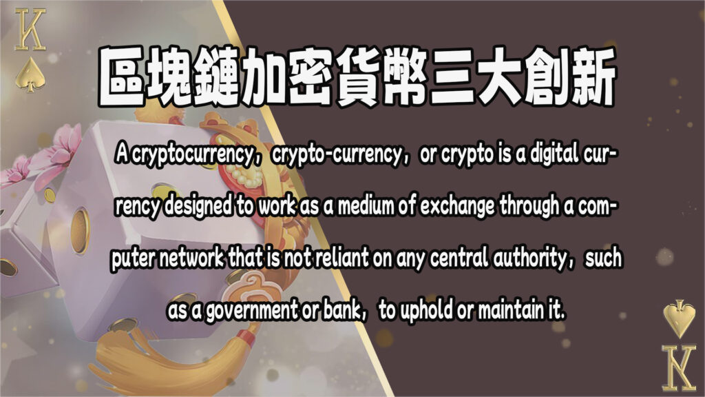 A cryptocurrency, crypto-currency, or crypto is a digital currency designed to work as a medium of exchange through a computer network that is not reliant on any central authority, such as a government or bank, to uphold or maintain it. It is a decentralized system for verifying that the parties to a transaction have the money they claim to have, eliminating the need for traditional intermediaries, such as banks, when funds are being transferred between two entities. (資料來源)